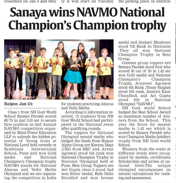 to the students proficiency towards the first level of Abacus or Vedic